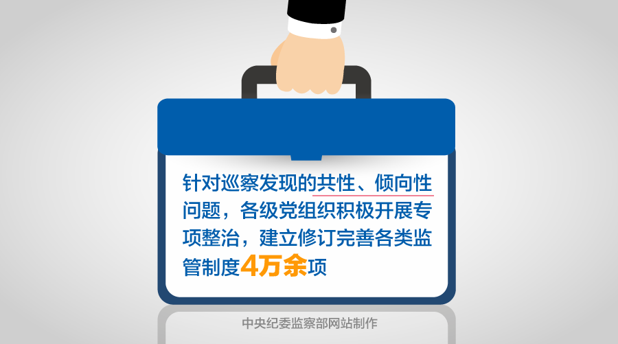 加强巡察成果运用既要抓好整改落实,也要完善制度、推进治本。针对巡察发现的共性、倾向性问题,各级党组织积极开展专项整治,建立修订完善各类监管制度4万余项,使工作不规范、制度不完善、执行不到位等问题及时得到整改,有效提升了基层党组织治理法治化、制度化、规范化水平。
