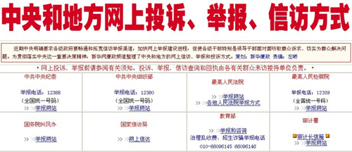 中央和地方网上反腐渠道汇总