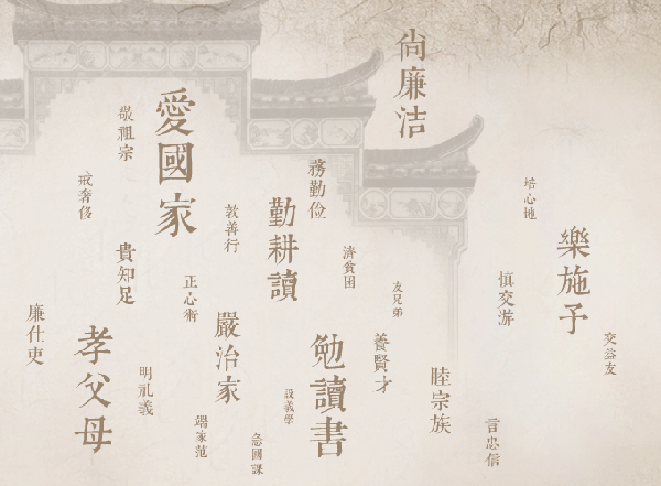 中华传统家规家训虽然内容十分丰富,涉及的领域极其广泛,但核心内涵始终为“孝悌忠信礼义廉耻”这八个字,敬祖宗、孝父母、爱国家、勤耕读、勉读书、尚廉洁、敦善行、慎交游等是其中的高频词。家规中的不少名句,流传千古,脍炙人口。