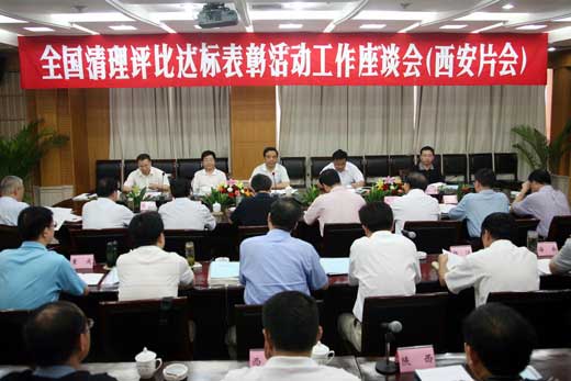6月27日,全国清理评比达标表彰活动工作座谈会(西安片会)在西安召开。中央纪委监察部纠风室副主任、国务院纠风办地方组组长李仲华主持会议。省纪委副书记纪相忠致辞。省纪委常委贠军等出席会议。