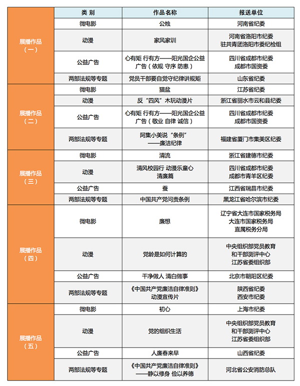 第三届“清廉中国·微视频”展播作品一览表