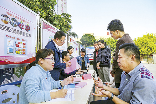 福建省莆田市纪委监委把基层党员干部违反中央八项规定精神、不担当不作为等方面突出问题作为监督检查重点,持续开展专项整治,通过深入基层开展面对面接访、实地走访等方式深挖细查问题线索。图为该市纪检监察干部在华林经济开发区流动接访点接访。摄影/吴震(莆田市纪委监委干部)