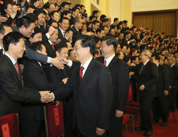 在热烈的掌声中,胡锦涛、习近平发表了重要讲话。