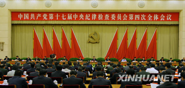 9月19日,中国共产党第十七届中央纪律检查委员会第四次全体会议在北京举行。这是中共