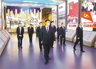 在庆祝中国共产党成立100周年之际,中共中央总书记、国家主席、中央军委主席习近平18日前往中国共产党历史展览馆,参观“‘不忘初心、牢记使命’中国共产党历史展览”,并带领党员领导同志重温入党誓词。他强调,党的历史是最生动、最有说服力的教科书。我们党的一百年,是矢志践行初心使命的一百年,是筚路蓝缕奠基立业的一百年,是创造辉煌开辟未来的一百年。回望过往的奋斗路,眺望前方的奋进路,必须把党的历史学习好、总结好,把党的宝贵经验传承好、发扬好,铭记奋斗历程,担当历史使命,从党的奋斗历史中汲取前进力量。要教育引导广大党员、干部通过参观学习,更加自觉地不忘初心、牢记使命,增强“四个意识”,坚定“四个自信”,始终在思想上政治上行动上同党中央保持高度一致,坚定理想信念,学好用好党的创新理论,赓续红色血脉,发扬光荣传统,发挥先锋模范作用,团结带领全国各族人民,更好立足新发展阶段、贯彻新发展理念、构建新发展格局,全面做好改革发展稳定各项工作,汇聚起全面建设社会主义现代化国家、实现中华民族伟大复兴中国梦的磅礴力量。