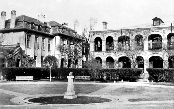 北大二院旧影,图中右边带拱券外廊的是数学系楼,1919年3月10日,毛泽东在此楼第16教室聆听了李大钊的演讲。(图片来源:北京大学校史馆网站)