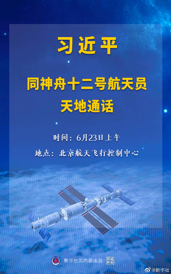 习近平总书记同正在天和核心舱执行任务的航天员聂海胜、刘伯明、汤洪波天地通话。