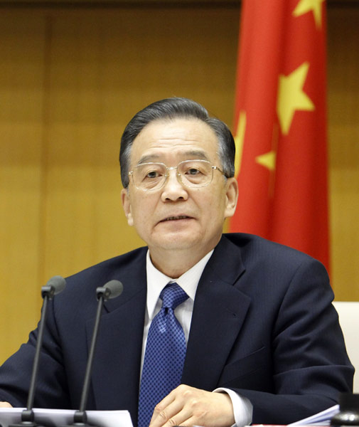 中共中央政治局常委、国务院总理温家宝在会上发表讲话。