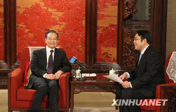 12月27日,中共中央政治局常委、国务院总理温家宝在北京中南海紫光阁接受新华社记者独家专访,就当前经济形势、明年经济工作和其他问题回答记者提问。