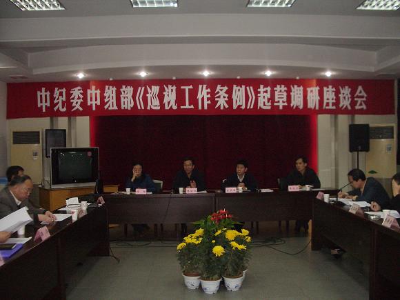 为贯彻中央纪委领导同志重要批示精神,广泛听取各方面意见,扎实做好《中国共产党巡视工作条例》的起草工作,10月14日,中央纪委、中央组织部联合起草组4名同志来到我省进行调研。15日召开了有省纪委、省委组织部分管领导、巡视组组长、巡视办主任、西安市纪委和西安市莲湖区纪委、高陵县委组织部主要领导参加的调研座谈会,重点围绕巡视工作的领导体制、机构设置、人员配备、主要任务、内容、方式方法、成果运用及巡视队伍的管理和组织领导、当前巡视工作中的重点和难点等问题,进行了深入的探讨和交流。16日至17日,调研组还深入到渭南市进行调研,召开座谈会,进一步听取被巡视单位的意见。