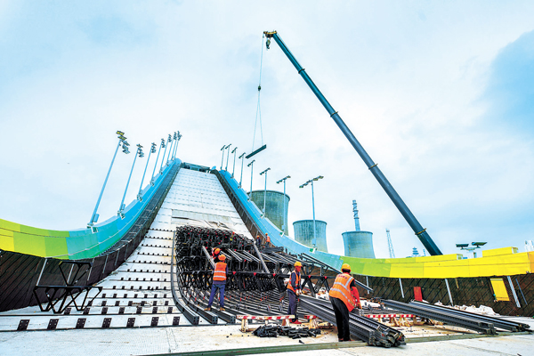 在兼具工业风貌与奥运气息的北京首钢老工业园区,坐落着冬奥历史上第一座与工业遗产结合的比赛场馆——首钢滑雪大跳台。2019年1月,其本体工程建设完成,成为北京冬奥会首个交付使用的竞赛场馆。