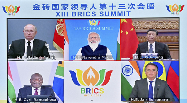 五国领导人充分肯定金砖合作15年来取得的成就,认为今年以来面对前所未有的挑战和复杂国际形势,五国携手抗击新冠肺炎疫情,推动各领域合作取得丰富成果,提升了新兴经济体国家的地位,愿继续共同努力,深化金砖战略伙伴关系,推动金砖合作取得更多务实成果。五国领导人表示,将继续推动全球团结抗疫,反对将病毒溯源政治化,愿加强公共卫生和疫苗合作,推动疫苗公平可及,促进世界经济强劲复苏,努力实现2030年可持续发展目标。各方重申支持多边主义和国际关系基本准则,反对单边主义、霸权主义,主张各国相互尊重独立、主权和平等,将就重大国际和地区问题加强沟通协调,合力应对气候变化,推动构建人类命运共同体。巴西、俄罗斯、印度和南非支持中国主办北京冬奥会、冬残奥会,支持中国2022年金砖主席国工作并主办金砖国家领导人第十四次会晤。