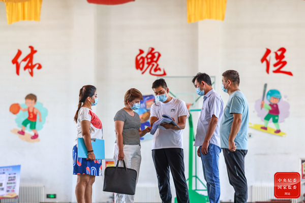 北京市西城区纪委监委检查组、西城区纪委监委驻区委教育工委区教委纪检监察组深入学校,以抽查方式,实地查看开学后校园疫情防控措施落实情况。(北京市西城区纪委监委 孙一淳 摄)