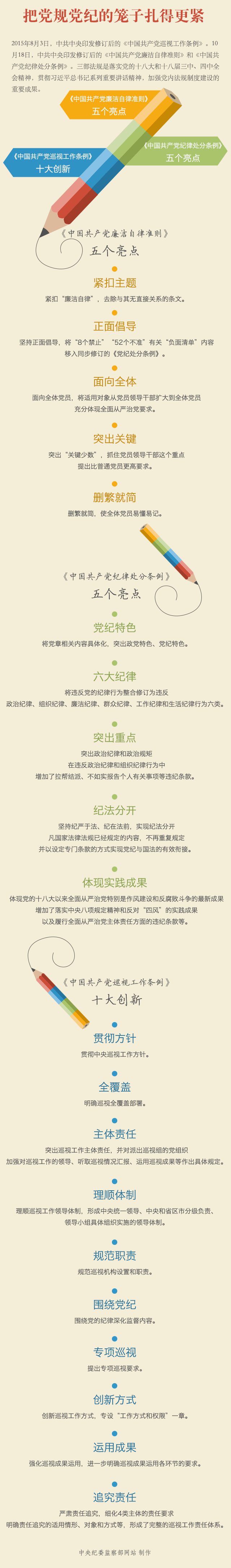 2016年1月1日,修订后的《中国共产党廉洁自律准则》(以下简称《廉洁自律准则》)和《中国共产党纪律处分条例》(以下简称《党纪处分条例》)正式施行。2015年8月3日,修订后的《中国共产党巡视工作条例》(以下简称《巡视条例》)已开始实施。