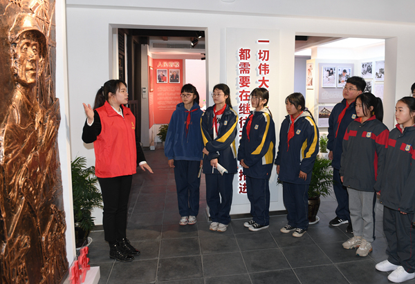 时光的坚守里,见证精神传承;岁月的流动中,奏响奋斗强音。图为党员志愿者在浙江省湖州市埭溪镇楷模故里,给来参观的学生讲解“人民楷模”“新时期铁人”王启民的故事。 新华社记者 翁忻旸 摄