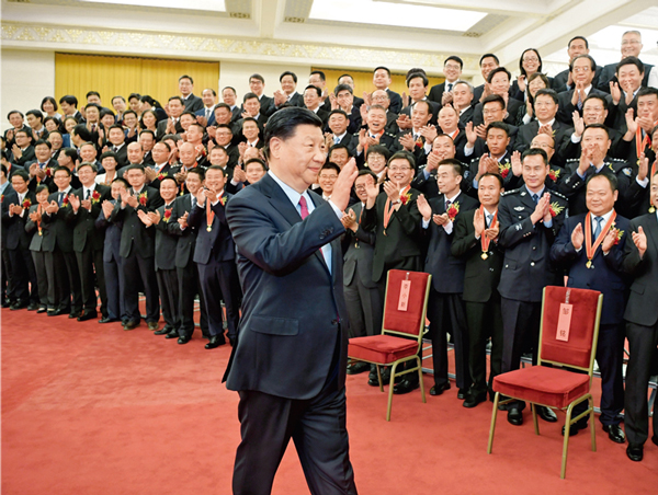 2019年6月25日,党和国家领导人习近平、李克强、王沪宁等在北京人民大会堂会见第九届全国“人民满意的公务员”和“人民满意的公务员集体”受表彰代表。 新华社记者 李学仁/摄