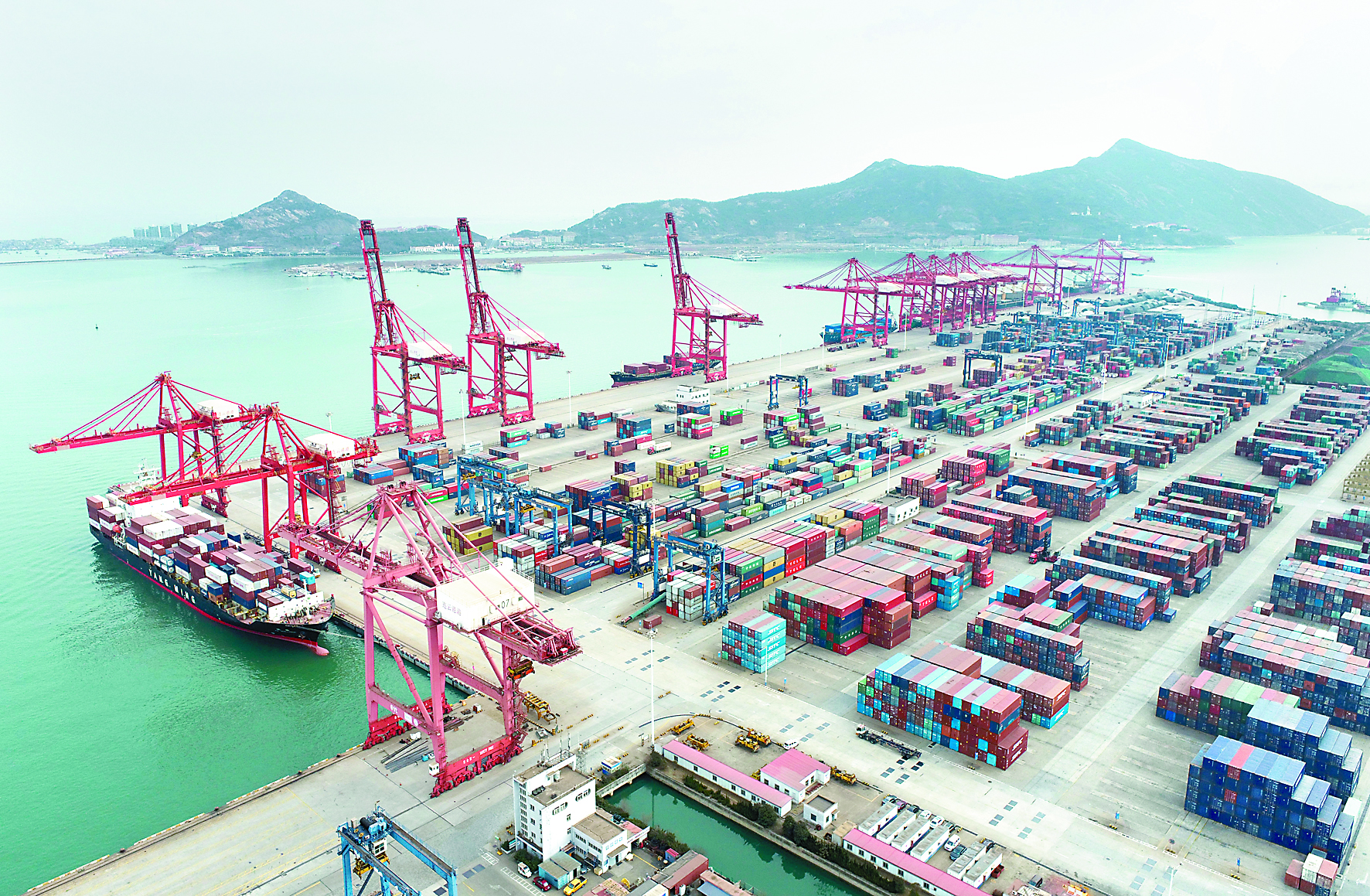 海关总署近日发布数据,今年前2个月,我国货物贸易进出口总值6.2万亿元,同比增长13.3%。其中,出口3.47万亿元,增长13.6%;进口2.73万亿元,增长12.9%,实现今年外贸稳起步。图为江苏连云港港口集装箱码头场景。新华社发(王健民 摄)