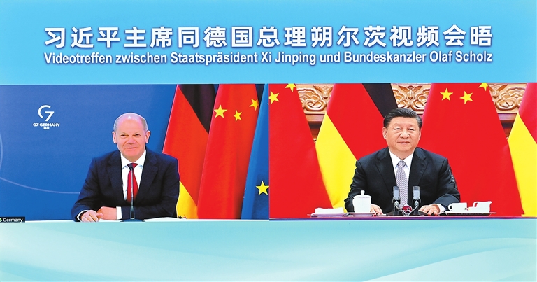 国家主席习近平5月9日下午同德国总理朔尔茨举行视频会晤。