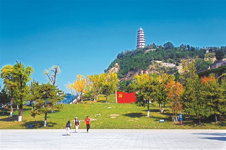 图为2022年9月18日,陕西延安,人们来到宝塔山下,感受延安精神,接受革命传统教育。(图片来源:视觉中国)