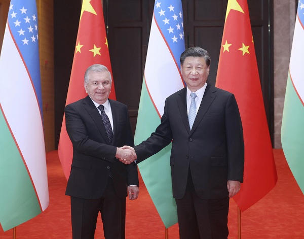 5月18日下午,国家主席习近平在西安同来华出席中国-中亚峰会并进行国事访问的乌兹别克斯坦总统米尔济约耶夫会谈。