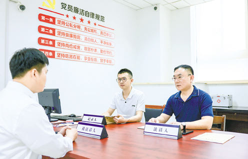 浙江省三门县纪委监委立足监督首要职责,坚持抓早抓小、实事求是,对存在苗头性、倾向性问题的党员干部及时谈话函询,让红脸出汗成为常态。图为该县纪检监察干部对相关人员进行谈话。陈昌晖 摄