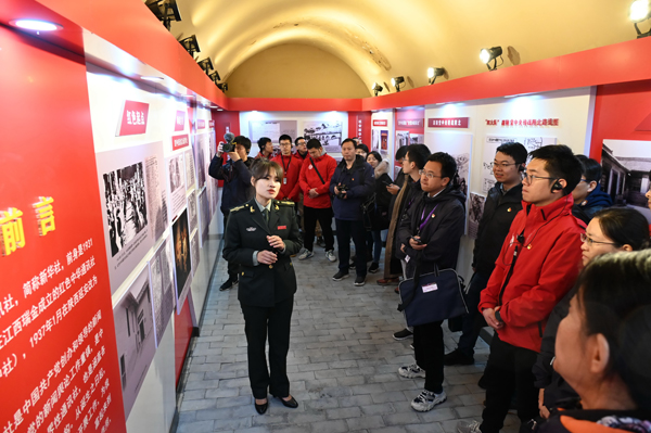 图为2023年4月,新华社党校组织春季期进修班和青干班学员在延安新华社旧址重温入党初心,激励履行职责使命。高增双 摄