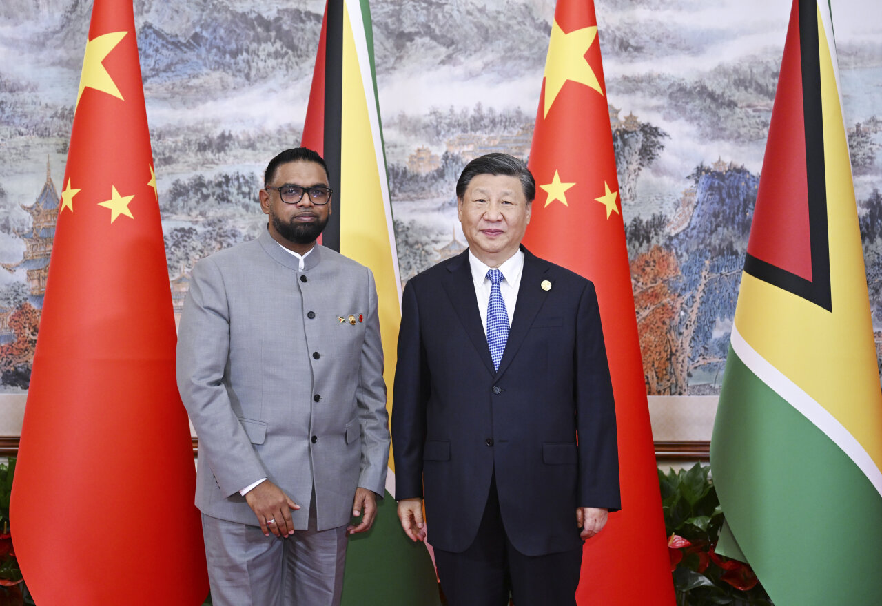 习近平指出,中国和圭亚那虽然相距遥远,但友谊源远流长。圭亚那是加勒比地区最早承认一个中国原则并同新中国建交的国家。去年,中圭隆重庆祝了建交50周年。近年来,圭亚那经济快速发展,国家建设日新月异,中国正在以高质量发展全面推进中国式现代化。中圭两国要做彼此信赖、相互倚重的好朋友,共享机遇、共迎挑战、共谋合作、共促发展,推动构建更加紧密的中圭命运共同体。