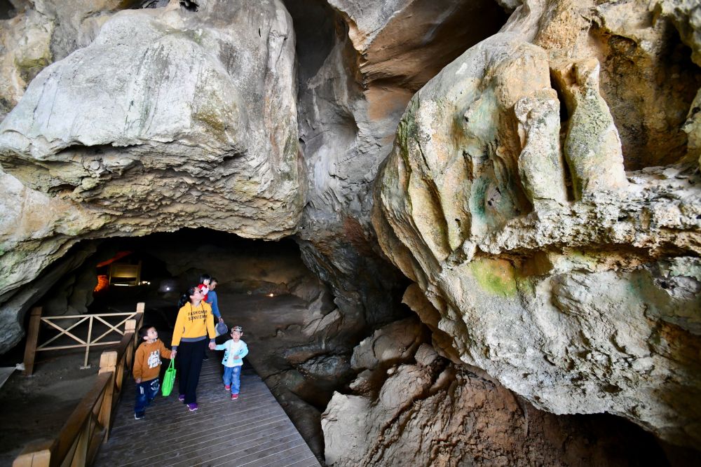 游人在位于福建省三明市三元区岩前镇的万寿岩遗址船帆洞游览(2020年4月9日摄)。新华社记者 姜克红 摄