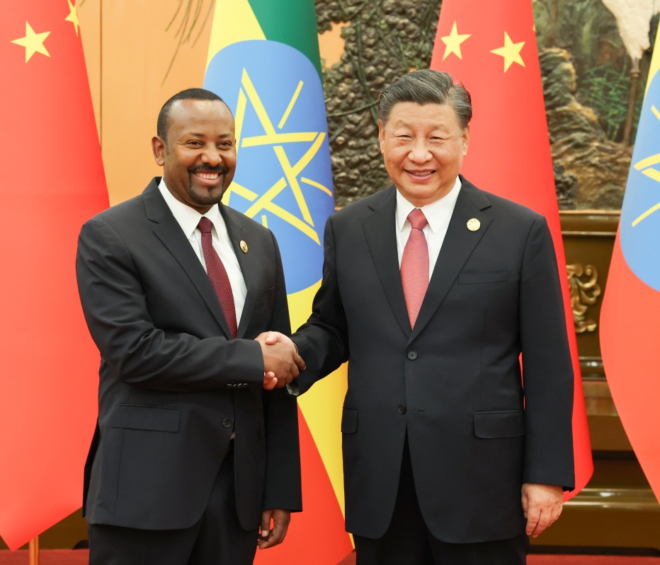 10月17日上午,国家主席习近平在人民大会堂会见来华出席第三届“一带一路”国际合作高峰论坛并进行正式访问的埃塞俄比亚总理阿比。