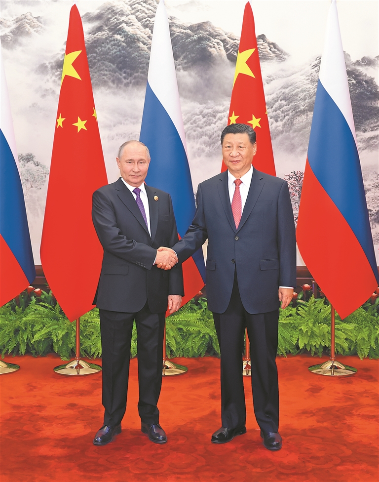 普京表示,俄中两国政府间合作机制运作良好,两国经贸、农业、工业、能源、互联互通等领域合作稳步发展。俄中关系的建立和发展,基于睦邻友好、相互尊重、助力各自国家发展等原则,经受住了各种考验。今天双方签署系列合作文件,表明双方继续深化拓展互利合作的决心。俄方愿同中方落实好《2030年前俄中经济合作规划》,办好今明年“俄中文化年”活动,加强欧亚经济联盟同共建“一带一路”倡议对接。明年将迎来世界反法西斯战争胜利80周年,俄中双方将举行庆祝活动。俄方赞赏中方在重大国际地区事务中秉持客观公正立场,愿同中方继续密切战略协作,坚定相互支持,促进世界多极化和国际关系民主化进程,推动俄中全面战略协作伙伴关系取得更多成果。