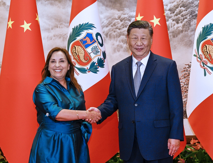 习近平指出,中国和秘鲁都是文明古国,两国友谊源远流长,人民友好深入人心。秘鲁是最早同新中国建交、最早同中国建立全面战略伙伴关系的拉美国家之一,也是最早同中国签署一揽子自由贸易协定的拉美国家。近年来,在双方共同努力下,中秘各领域合作取得丰硕成果,中国企业在秘鲁重大合作项目为秘鲁经济发展、民生改善发挥了重要作用。中方高度重视发展中秘关系,愿同秘方夯实政治互信,深化务实合作,促进文明互鉴,加强多边协作,推动中秘全面战略伙伴关系不断迈上新台阶。