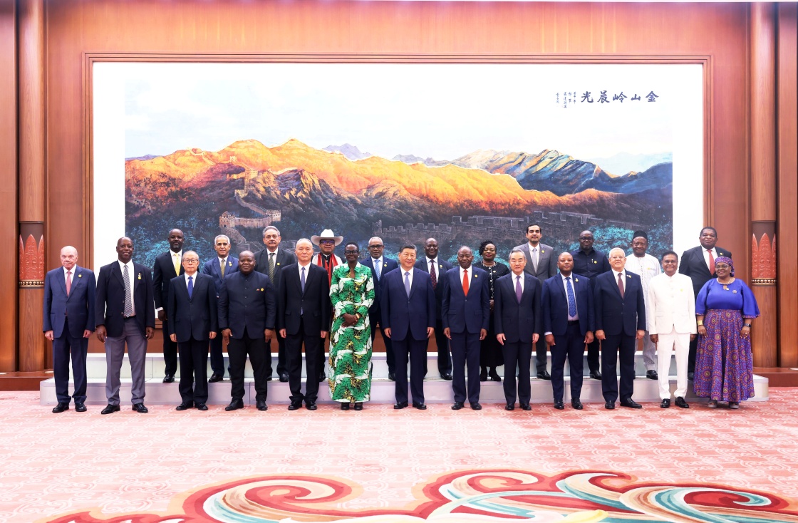 8月20日下午,国家主席习近平在北京人民大会堂集体会见出席全国人大加入各国议会联盟40周年纪念活动暨第六次发展中国家议员研讨班外方议会领导人。