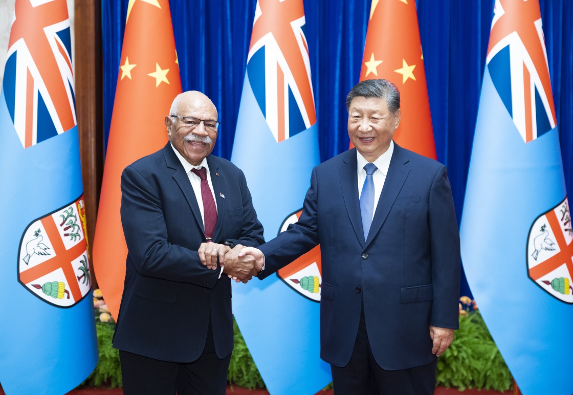 8月20日下午,国家主席习近平在北京人民大会堂会见来华正式访问的斐济总理兰布卡。