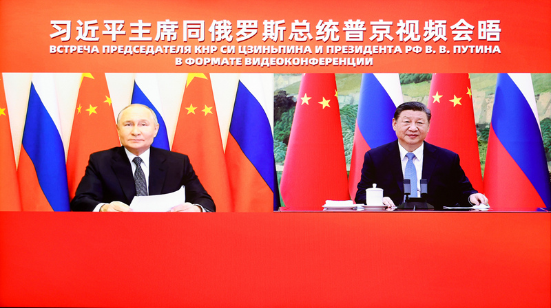 1月21日下午,国家主席习近平在北京人民大会堂同俄罗斯总统普京举行视频会晤。