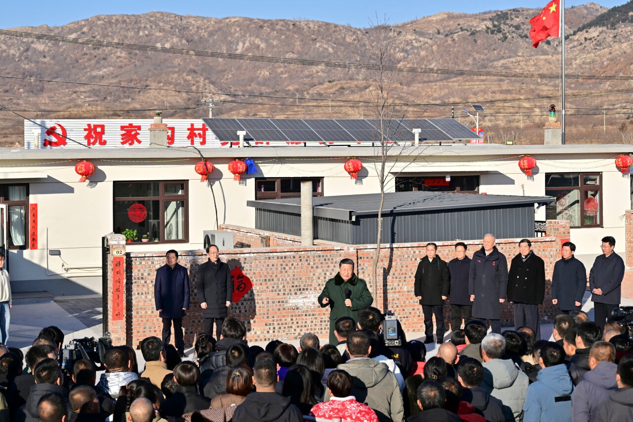 1月22日至24日,中共中央总书记、国家主席、中央军委主席习近平冒着严寒来到辽宁,看望慰问基层干部群众。这是22日下午,习近平在葫芦岛市绥中县明水满族乡祝家沟村考察时,同村民们亲切交流,向大家致以诚挚慰问和新春祝福。新华社记者 翟健岚 摄