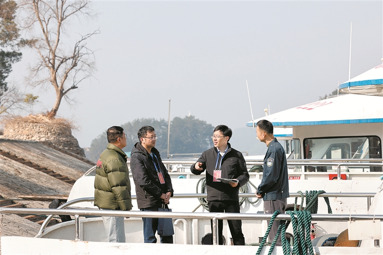 农历春节临近,浙江省淳安县纪委监委坚守节点,组建专项督查组深入景区、酒店、商超等重点场所,加强监督检查、明察暗访,及时发现、严肃查处违规违纪行为。图为近日,该县纪检监察干部在千岛湖中心湖区码头走访了解有关情况。 谢航凯 摄