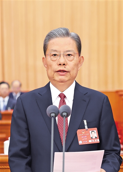 3月5日上午,第十四届全国人民代表大会第三次会议在北京人民大会堂开幕。赵乐际主持开幕会。 新华社记者 黄敬文 摄