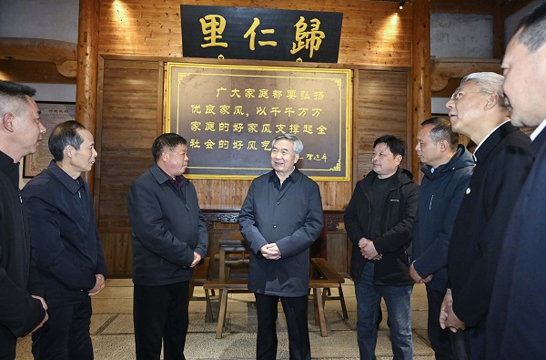 3月17日至20日,中共中央政治局常委、中央纪委书记李希到江西调研。这是3月18日,李希在上饶市婺源县汪口村与干部群众深入交流,听取对正风肃纪反腐的意见建议。新华社记者 岳月伟 摄