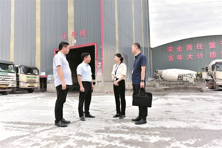 四川省泸州市纪委监委把优化营商环境作为政治监督重点,着力纠治领导干部违规干预插手市场经济活动等问题,以有效监督为经济社会发展清障护航。图为近日,该市龙马潭区纪检监察干部在某混凝土工程公司了解相关情况。 曾永强 摄