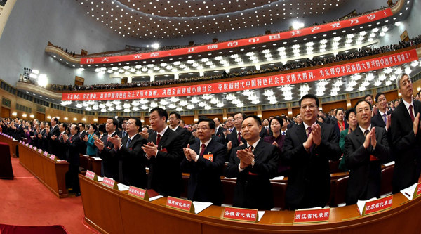 10月18日,中国共产党第十九次全国代表大会在北京人民大会堂开幕。(新华社记者 饶爱民 摄)