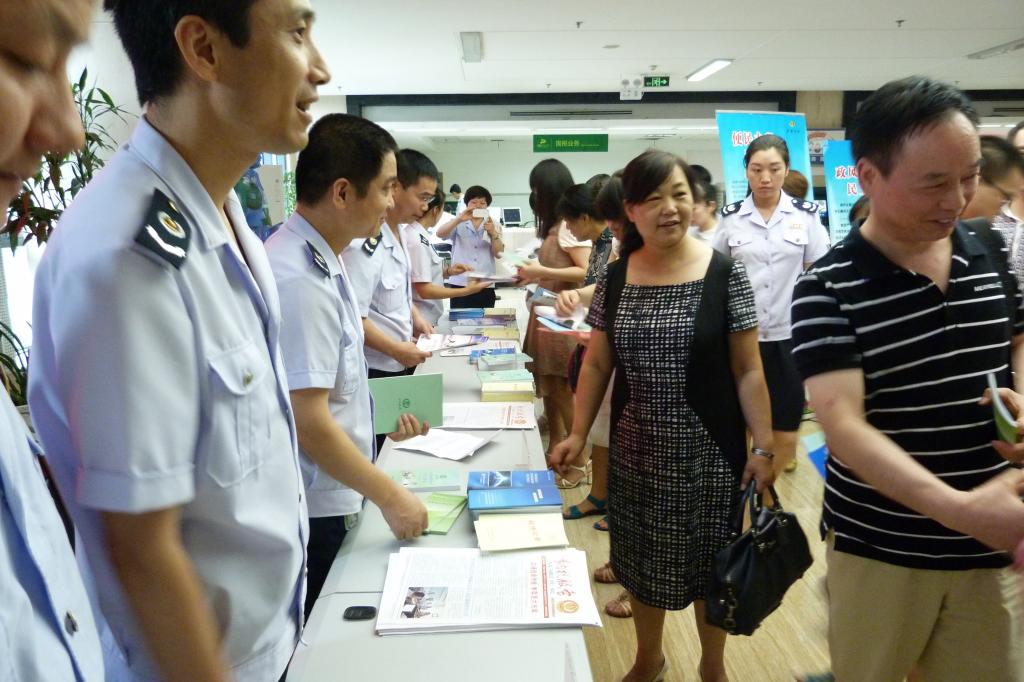 分局领导对此次活动高度重视、全程参与。整个活动精心设计、周密安排,采取文字说明与图片展示相结合、领导接待与骨干解答相结合、现场互动与资料发放相结合的形式,向近百名纳税人集中宣传政风行风民主测评内容、纳税人的权利与义务、纳税服务承诺、开业税务登记流程等方面的内容。