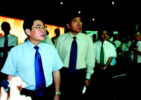 15日上午,西安市委常委集体参观了正在陕西历史博物馆举行的西安市反腐倡廉图片暨书画展。省委副书记、西安市委书记袁纯清(左一)在参观时强调,要切实抓好反腐倡廉工作,使全市各级领导班子和领导干部牢固树立正确的权力观,强化为人民服务的宗旨意识,不断加强执政能力建设,筑牢拒腐防变的思想防线。据悉,展出活动将持续到21日结束。
