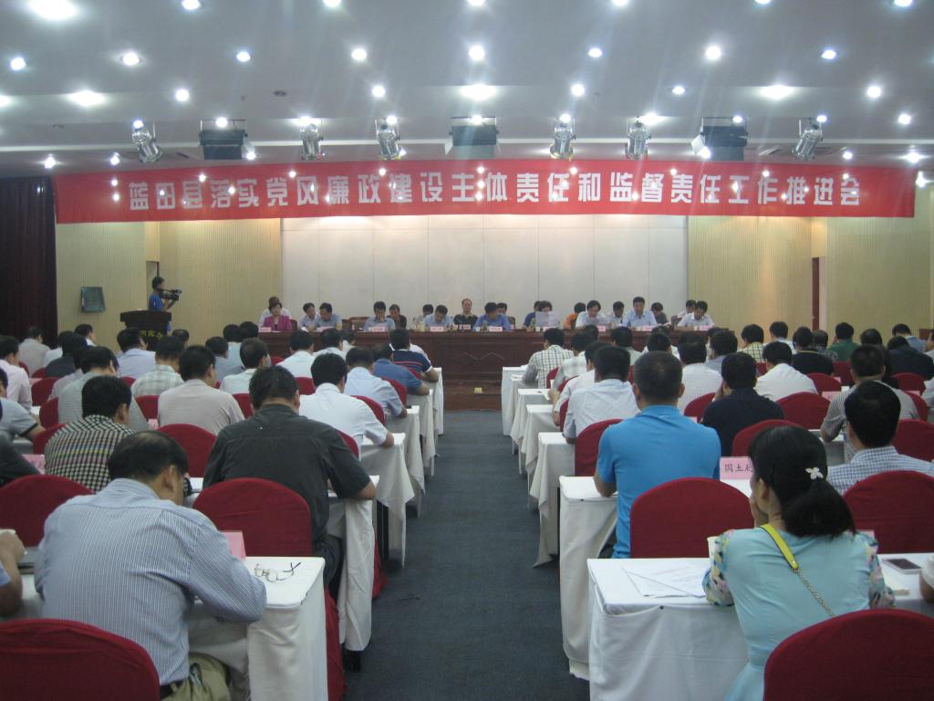 为进一步推动党风廉政建设主体责任和监督责任的落实,9月12日上午,蓝田县召开落实党风廉政建设主体责任和监督责任工作推进会,对落实“两个责任”进行再安排、再强调、再部署。会议由县委副书记、县长王浩主持。全体县级领导,各镇党委书记、镇长、纪委书记,各部门党政主要负责人以及纪检组长(纪委书记)等200余人参加会议。