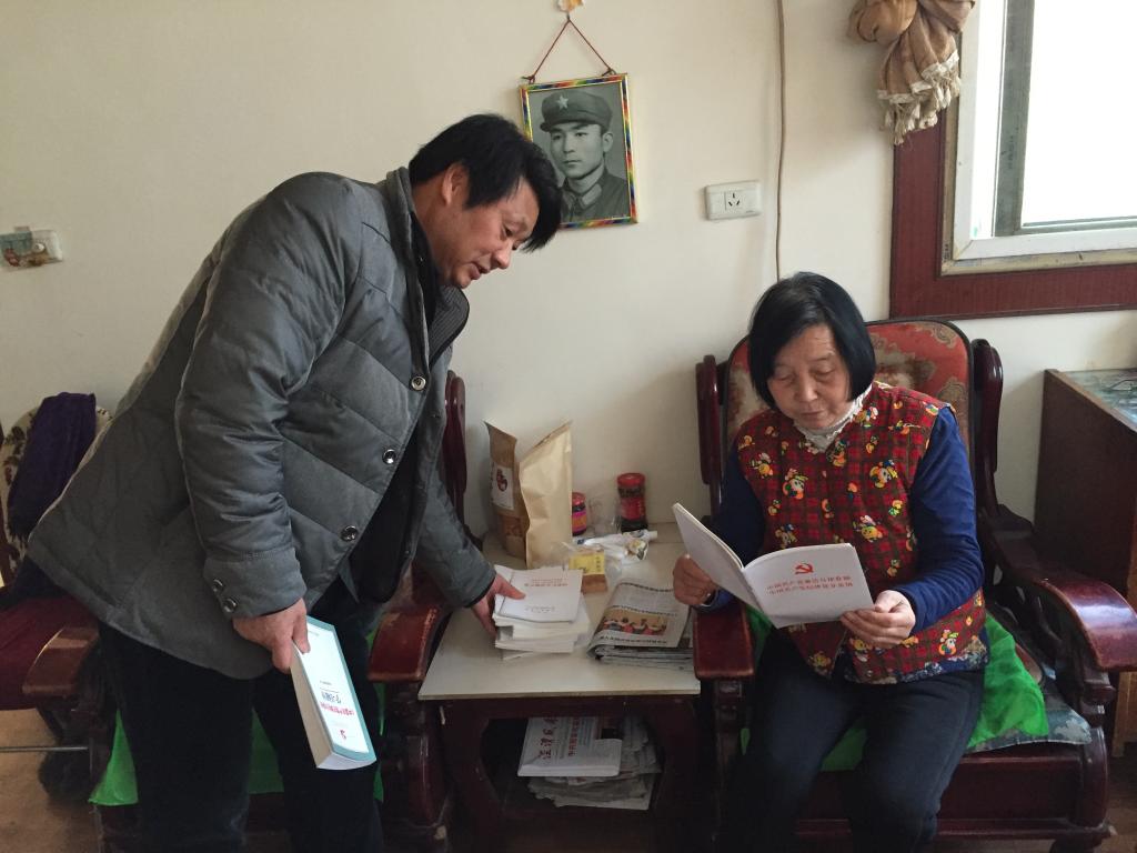 春节来临之际,为促进《准则》《条例》在广大党员心中落地生根,西安市高陵区日前启动了为期三个月的集中轮训工作,涵盖全区15489名党员(含离退休干部),各级党组织负责人带头宣讲,所有参训人员要写心得并接受测试,确保全面从严治党压力层层传导,不漏一人。图为该区耿镇纪委干部到老党员家赠送两项法规学习资料。(摄影报道 陈婧 李刚强)