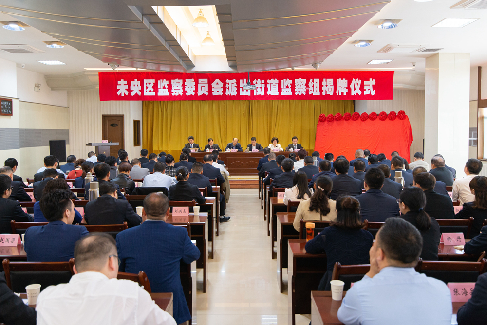 9月28日,西安市未央区监察委员会派出街道监察组揭牌仪式隆重举行,西安市纪委常委、市委巡察办主任陈武,西安市未央区委书记杨建强共同为10个派出街道监察组揭牌。仪式由未央区委副书记、区长梁晚晴主持,未央区人大常委会主任陈伟华、未央区委组织部长杨联合、未央区纪委书记、监察委员会主任崔诗越出席仪式。未央区各街道、区级有关部门主要负责同志、全区纪检监察干部参加仪式。