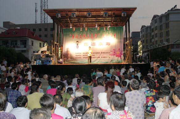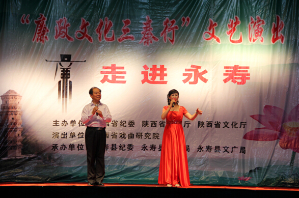 7月27日晚,永寿县中心广场,人头攒动,热闹非凡。由省纪委、省监察厅、省文化厅联合主办的“廉政文化三秦行”走进永寿文艺演出在这里举办。县委常委、纪委书记胡江涛,县委调研员邱晓燕,县政府调研员宋宏斌等在家的县级领导及广大干部群众3000多人共同观看了演出。