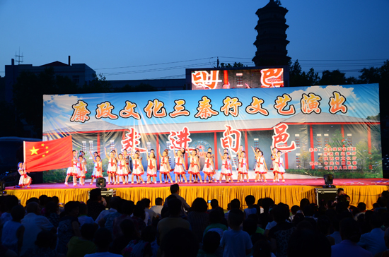 7月30日晚八时,由省纪委、省监察厅、省文化厅联合主办的“廉政文化三秦行”大型文艺演出活动在我县体育场隆重举行。全体在家县级领导和广大人民群众共同观看了演出。