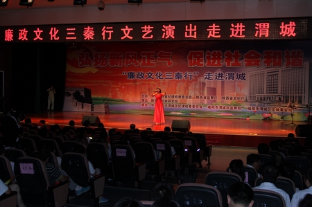 7月20日上午,由省纪委、监察厅、文化厅联合举办的“廉政文化三秦行”文艺演出在渭城区行政中心大礼堂隆重上演,区委副书记陈锋,区委常委、常务副区长李晓曦,区委常委、区纪委书记李睿,区人大副主任杨存悌等区级领导同广大干部群众共500余人观看了演出。
