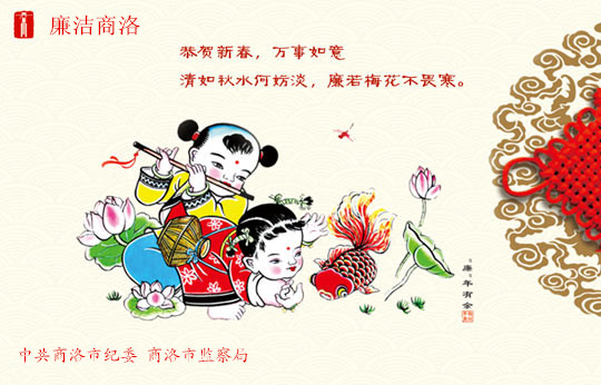 商洛纪委推出的廉政电子贺卡图文并茂,除了吉祥祝福话语,更多的是对领导干部的廉政警示。廉政电子贺卡共有3幅,分别用“户户悬鱼”的古典漫画图片配以“新年新岁新景、知廉守廉倡廉”的劝廉语,杨柳青年画“连年有余”、“清廉有年”的喜庆文化元素图案配以“清如秋水何妨淡、廉若梅花不畏寒”、“莲因洁而美、人因廉而正”的廉政寄语,现代与传统相结合,廉洁与生机相映衬,教育引导党员干部廉洁从政。网友可以点击贺卡下载上传至个人邮箱,发送亲朋好友,在喜庆的氛围中倡导廉洁理念,弘扬新风正气。