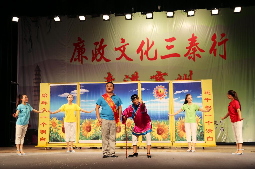 举办“廉政文化三秦行”活动,是为了进一步扩大廉政文化的覆盖面和影响力,促进党的群众路线教育实践活动深入开展精心组织的一场弘扬时代旋律、展现反腐倡廉主题的优秀剧节目。演出活动的开展,对我们坚持用廉洁理念引导人、用廉洁文化感染人、用廉洁精神激励人,传递正能量,认真落实“八项规定”、狠刹“四风”,自觉践行“三严三实”,大力弘扬新风正气,自觉抵制歪风邪气,为共同建设文明、和谐、富裕、秀美新商州具有现实的意义。